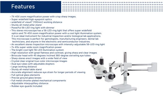 JBM-BS45 Stereo Zoom Microscope With Boom Stand