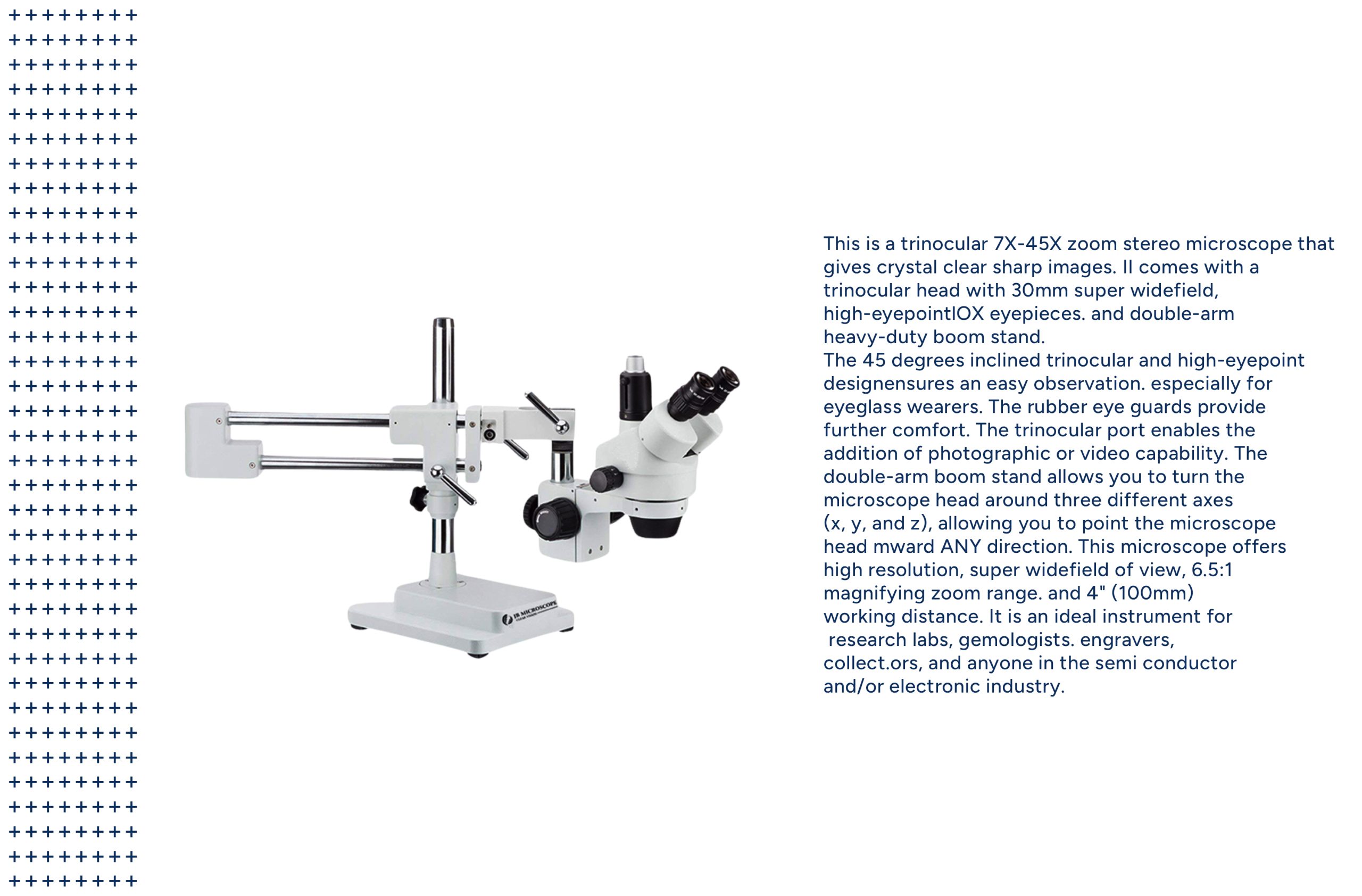 JBM-BS45 Stereo Zoom Microscope With Boom Stand